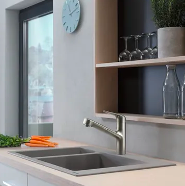 ComfortZone Hansgrohe : espace optimisé entre le mitigeur et l’évier, offrant ainsi une grande liberté de mouvement.